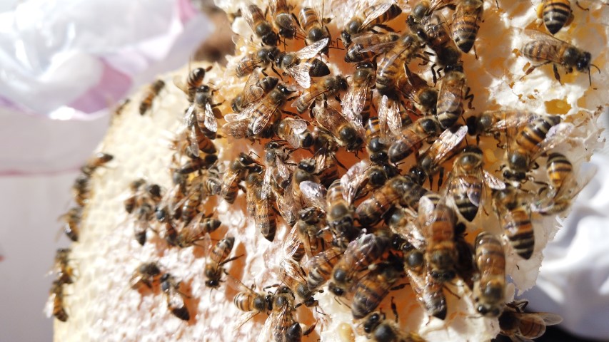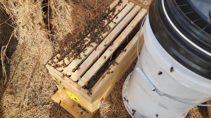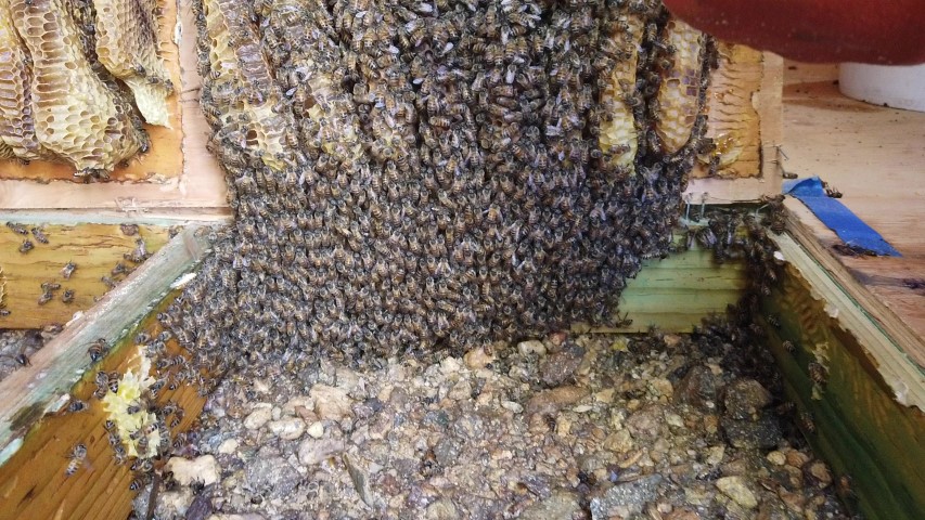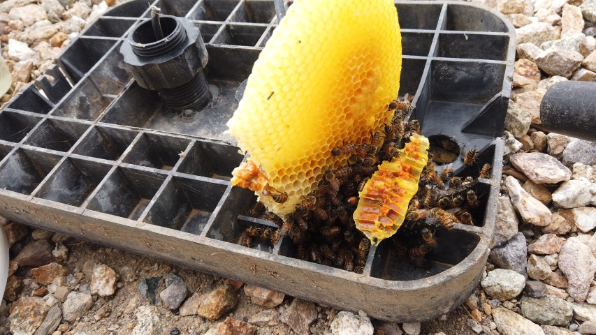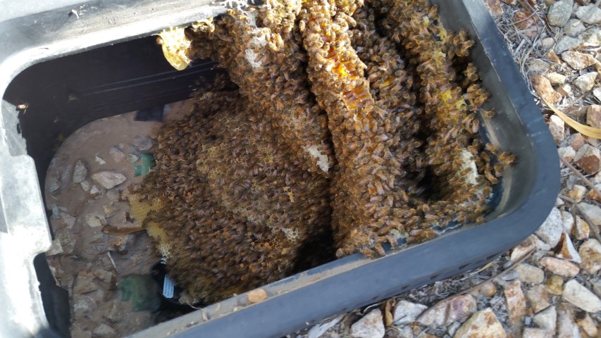 Feeding: Removing bees from their home can put stress on the colony, so feeding is generally necessary to support the bees while they establish in their new home. They need to learn their new environment, repair any comb that was damaged during removal from the old location, re-orient themselves and learn where to forage in their new area.