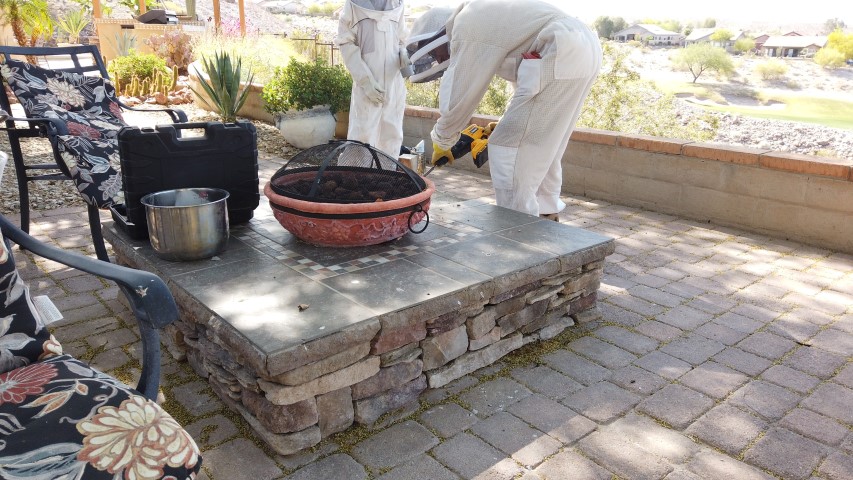 Next, after speaking with you we will generally pack the truck up with everything we think we may need for the job. This includes protective gear such as suits, veil, gloves. Also equipment such as a smoker, and several other items including a ladder, tools, and other miscellaneous items.