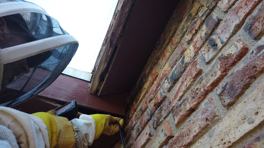 The inspection can be as simple as 'looking over' the area in the case of a simple swarm on a branch, or as complicated as using ladders, step stools, drills, saws, or other tools and inspection cameras to get a proper understanding of the hive location and size. Even with our best efforts sometimes it can be challenging to fully assess the scope of a hive and extent of it's size.
